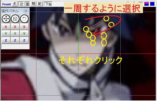 上のまつ毛の端をそれぞれクリックし、四角の面を作ります。